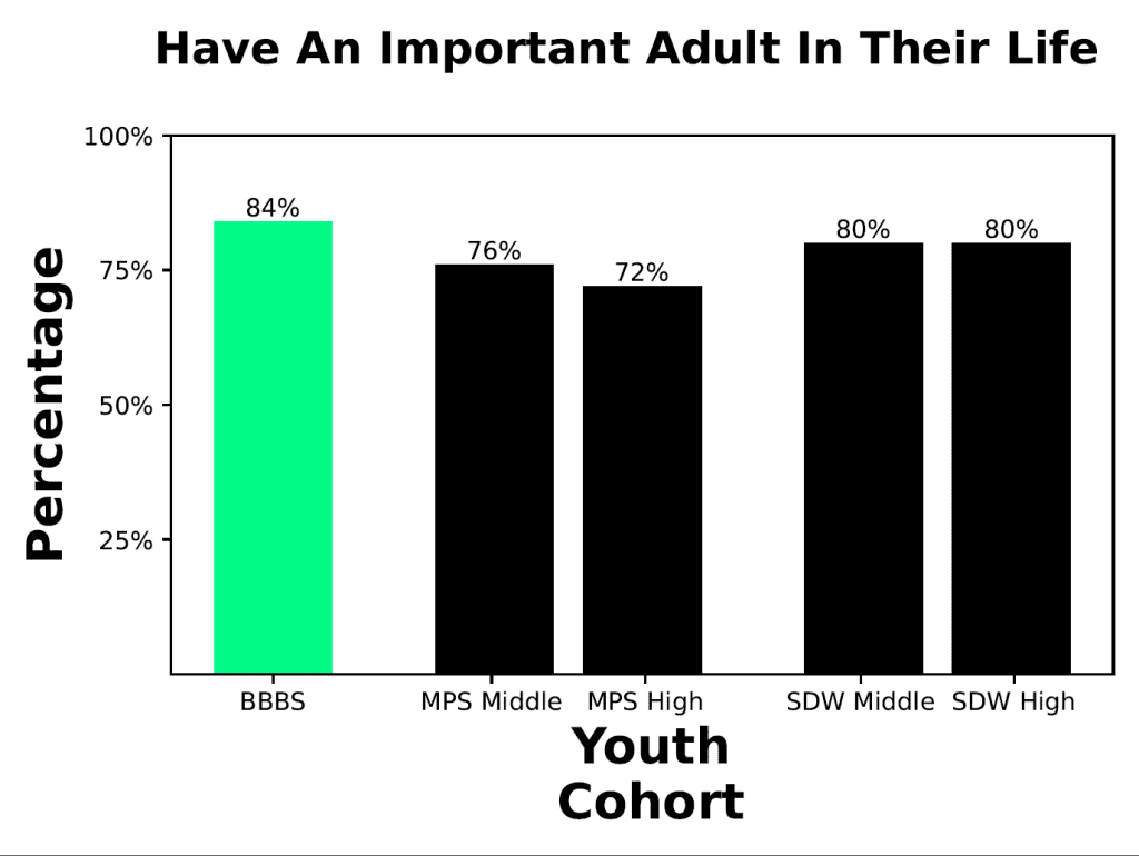 - Similarly, 84% of BBBS youth say they have an important adult in their life they can trust, compared to 80% (avg) of Waukesha students and 74% (avg) of MPS youth.